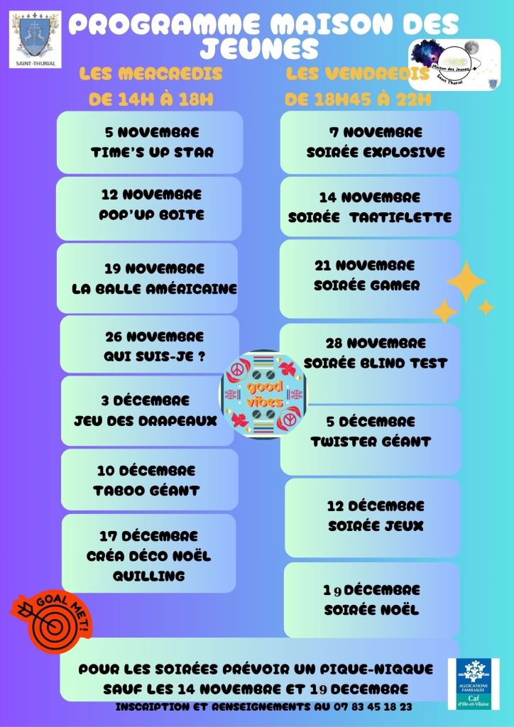 Contact au 0783451823 ou à l’adresse jeunesse@stthurial.fr .